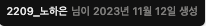 저게 2023년 11월 12일에 생성한 노션 페이지인데