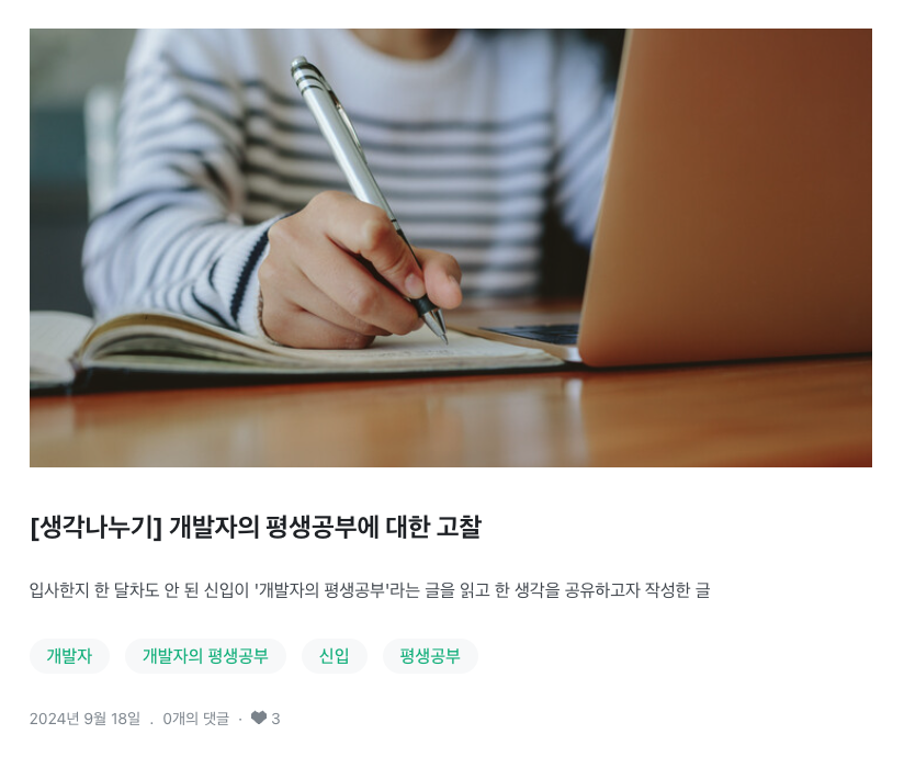 | 개발자의 평생공부에 대한 고찰 (2) | 2025.02.16 |